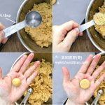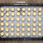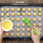 - Take out ½ tablespoon (about 8 g) of dough, press until firm, and shape gently into a ball. Lightly flatten with palm, and place on a lined baking tray.