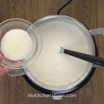 7 Turn off heat, sweeten to taste while the milk is still hot.