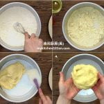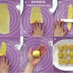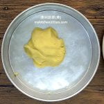 4 Flatten water dough, top with oil dough, fully wrapped oil dough with water dough, shape into a ball.