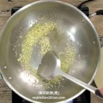 3 Preheat cooking wok, add in cooking oil, add in chopped garlic and cook until fragrant.