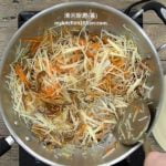 Stir-Fried Jicama with Cuttlefish and Mushroom is better known as “bang Kuang char” or “jiu hu char” in northern Malaysia Hokkien. It is a very popular dish among northern Malaysian Chinese.