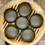 After proofing for 30 minutes, turn to high heat until water is boiling (about 3 minutes), then reduce to medium heat and steam for 12 minutes. When done, slightly open the lid to leave a gap, allow Black Sesame hee pans to cool for 5 minutes in the steamer before removing.