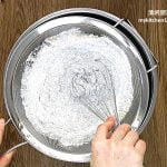 4 Combine glutinous rice flour, ground sesame and plain flour, sift through and mix well.