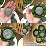 - Prepare 12 pieces of round banana leaves (diameter = 10 cm), then coat with oil.