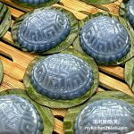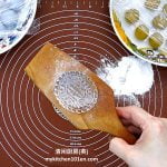 Lightly coat Angku mould with glutinous rice flour, tap off excess flour. (Reminder: The size of Angku mould used in this recipe is 35-gram mould, about 6 cm x 5.5 cm.)