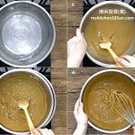 7 Pour thickened white mixture onto cooked brown sugar layer, steam over medium heat for 16 minutes.
