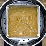 Pour thickened brown sugar mixture into prepared baking pan (create an uneven surface to help both layers sticking together), steam over medium heat for 16 minutes.