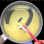 2. Sprinkle gelatine powder over plain water, set aside to soak for 10 minutes. Cook soaked gelatine over medium-low heat until melted. Set aside to cool. (Reminder: The strength for gelatine powder is 200 blooms.)