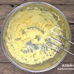 3 Mix together cream cheese and sugar, beat over low speed until smooth. (Reminder: Cream cheese must be at room temperature. If it is cold, it can’t be beaten until smooth and creamy.)