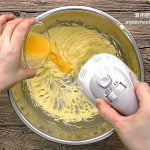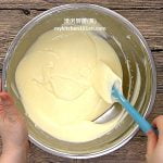 2. Add in egg gradually, mix until well blended. (Reminder: Lightly beat a whole egg, then measure out 35 g of egg.)