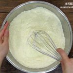 Combine and sieve together plain flour, baking powder, baking soda, icing sugar and salt. Add in almond flour and mix until well combined.