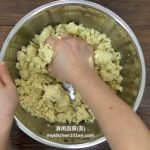 5 Take out ½ tablespoon (about 7 g) of dough, press until firm and shape gently into a ball, then lightly press down with your palms.