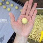 It is important to press cookie dough until firm before shaping gently into a ball so that the cookies won’t break easily when holding. The amount of oil needed will depend on the water absorption capacity of the flour you use. Thus, you may adjust the quantity of oil added according to the dampness of your cookie dough.