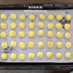 Take out ½ tablespoon (about 7 g) of dough, press until firm and shape gently into a ball, then lightly press down with your palms. Place the dough balls slightly apart on a lined baking tray.