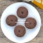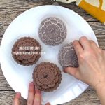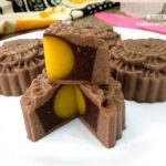 The outer layer of this Chocolate Agar-Agar Jelly Mooncake is made with chocolate milk, it is filled with chocolate paste made with mung bean and agar-agar “egg yolk” which is made from the combination of pumpkin and mung bean.