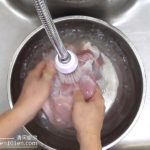 2. Immerse and gently cook in hot water, at a temperature slightly below boiling point for 30 minutes. This helps to get rid of pork offensive odor.