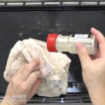 4. Pat dry and season the meat with ground pepper, except the skin.