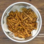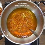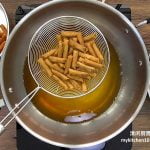 Add in 1/3 portion of spring rolls, reduce to medium-low heat, fry for about 6 minutes, stir occasionally so that the heat is evenly distributed. (Reminder: The oil might be hotter when frying the 2nd and 3rd batch. To prevent spring rolls from browning too fast, reduce to low heat for about 1 minute first after adding in the spring rolls, then only increase to medium-low heat.)