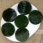 Prepare 6 pieces of round banana leaves (diameter = 11 cm), then coat with oil.