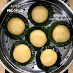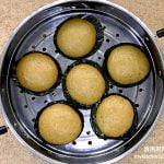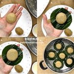 - Coat palms with oil, shape dough into a ball, put onto a piece of banana leaf, press lightly with palm, then arrange in steamer rack.