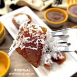 The texture of Kuih Kosui is soft but chewy, it is usually served with fresh shredded coconut. Besides brown sugar flavour, it can also be made into Pandan Kuih Kosui by adding fresh pandan juice.