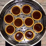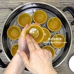 Lightly coat small porcelain cups (Volume: 55 ml) with cooking oil, then arrange in steamer rack.