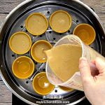 Transfer mixture to measuring cup. Put steamer rack with small cups on steamer, pour mixture into the cups until 85% full.