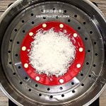 7 For shredded coconut: Add pinch of salt to fresh shredded coconut, mix well. Steam over medium heat for 5 minutes. Cover the steamed shredded coconut and set aside to cool.