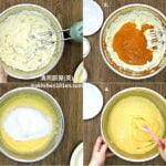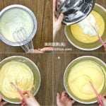 3 Whip dairy whipping cream over low speed until soft peak, add to cheese mixture, fold until combined. (Reminder: Use stainless steel mixing bowl for whipping. Keep both mixing bowl and whisk in freezer for 30 minutes to chill them up before using.)