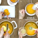 1 Dice peach, blend until smooth. Add in sugar, grated lemon zest and lemon juice. (Reminder: Buy 1 can of Peach Halves in light syrup 825 g/29 oz, the drained weight is around 500 g.)
