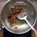 2. Glutinous rice: Heat wok, add in cooking oil, cook garlic until fragrant, then add in glutinous rice. Add salt, five spice powder and dark soy sauce to mushroom soaking water, mix well. Add the liquid to glutinous rice, stir-fry until liquid has dried up. (*Reminder: The soaking time for different types of glutinous rice might be different, adjust the soaking time according to the type of glutinous rice you use.)