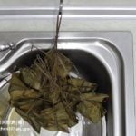 4. Hang the cook rice dumplings on a hook to drain off the water. (Storing the rice dumplings: Since no borax is added, the cooled dumplings should be refrigerated to maintain the freshness. I usually freeze the dumplings and consume with 3 months.)