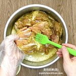 4. Pour marinade over chicken whole legs, coat each well with marinade. Keep refrigerated to marinate for at least 5 hours or overnight. (Reminder: Marinate longer for better taste.)