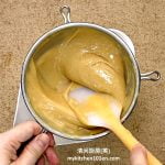 - Sieve the flour again into gula Melaka mixture, mix until blended. (Reminder: Add in extra 1-2 tsps of water if the batter is too thick.)