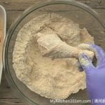 5 Dredge drumstick in flour mixture, fully coat chicken drumstick with flour, one at a time.