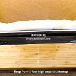 Bake at 150°C/300°F for 1 hour 50 minutes, until fully cooked. (Reminder: If your Cotton Sponge Cake does shrink when out of oven, then your oven temperature is too hot. Try reducing baking temperature to 140°C. The cake should rise slowly during baking to prevent it from over-rising then collapsing when out of oven.)