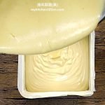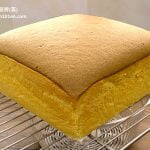 The texture of Japanese Cotton Sponge Cake is as soft as cotton, it has a high proportion of egg to the amount of flour. Since the proportion of flour is low, Cotton Sponge Cake shouldn’t rise too high when baked, or it will collapse when out of oven, it should be baked at low heat with water bath.