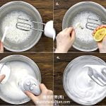 (Reminder: Egg whites and equipment used to beat egg whites must be grease-free, water-free and egg yolk-free. It is advisable to clean the egg shells and equipment with dishwasher detergent, then dry with a clean cloth. Use a clean small bowl to separate the egg yolk and egg white, if the egg yolk cracks, don’t use that egg white.)