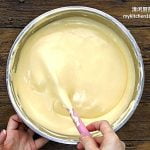7 Add meringue to egg yolk batter in 3 batches, mix gently with hand whisk.