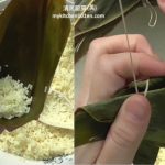 - Fill glutinous rice into bamboo leaf cup until 70% full, wrap properly and tie with bamboo string (rinse bamboo string with water before using to prevent it from breaking easily).