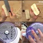 Remove the tough fiber in the centre, then finely grate cassava with food processor.