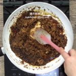 Cook over medium heat until coconut filling is drying up, add in slaked cornstarch, mix well.