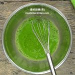 - Beat the eggs lightly, add in 200 ml of pandan juice, corn oil and salt, mix until combined.