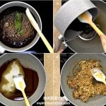 1 Combine gula Melaka, dark brown sugar, hot water, and pandan leaves in a saucepan, and cook over medium heat until sugar is fully dissolved. Strain sugar syrup through a sieve into the non-stick cooking pan. Add in slaked cornstarch, and mix well. Add in shredded coconut, and mix until combined.