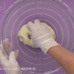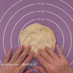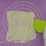 5 Slightly flatten dough by pressing it out with your fingers. Use a rolling pin and flatten dough as thin as possible, the dough can be pull and stretch paper-thin and almost translucent. Smear flour-fat mixture evenly.