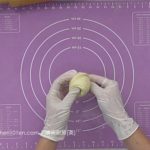 Slightly flatten dough by pressing it out with your fingers. Use a rolling pin and flatten dough as thin as possible, the dough can be pull and stretch paper-thin and almost translucent. Smear flour-fat mixture evenly.