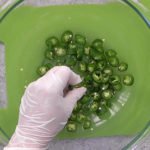 2 Lightly squeeze the chilies ring to loosen the seeds.