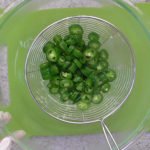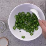Wash and clean green chilies, slice into thick rings in any thickness you preferred.