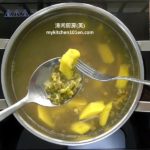 After the sweet potatoes are softened, it’s time to introduce gula Melaka, salt, and pandan leaves into the dessert. Gula Melaka, a type of coconut palm sugar commonly used in Southeast Asian cooking, imparts a rich, caramel-like sweetness that elevates the dish to a new level of flavor. The salt enhances the sweetness by providing a subtle contrast, while pandan leaves infuse the dessert with a fragrant, almost vanilla-like aroma that is characteristic of many traditional Asian desserts.