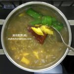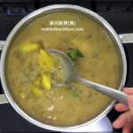 One of the key components of this dessert is the addition of sago pearls. Sago is a starch extracted from palm stems and is used to add a chewy texture to the dish. The sago pearls should be semi-cooked separately before being added to the dessert. Once the sago is ready, it’s added along with coconut milk to the mung bean and sweet potato mixture. The creamy coconut milk enriches the dessert, giving it a silky, velvety texture that contrasts beautifully with the earthy mung beans and soft sweet potatoes.